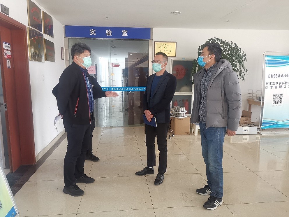 2020年2月24日,,,丽水市莲都区市场监视治理局张小平副局长一行莅临Z6尊龙凯时子公司丽水Z6尊龙凯时农科检测手艺有限公司(以下简称“丽水Z6尊龙凯时检测”),,,调研企业疫情防控和复工复 产事情,,,现场核查公司疫情防控的落真相形,,,同时相识公司现有的难题,,,资助协调解决相关问题。。。。。。。