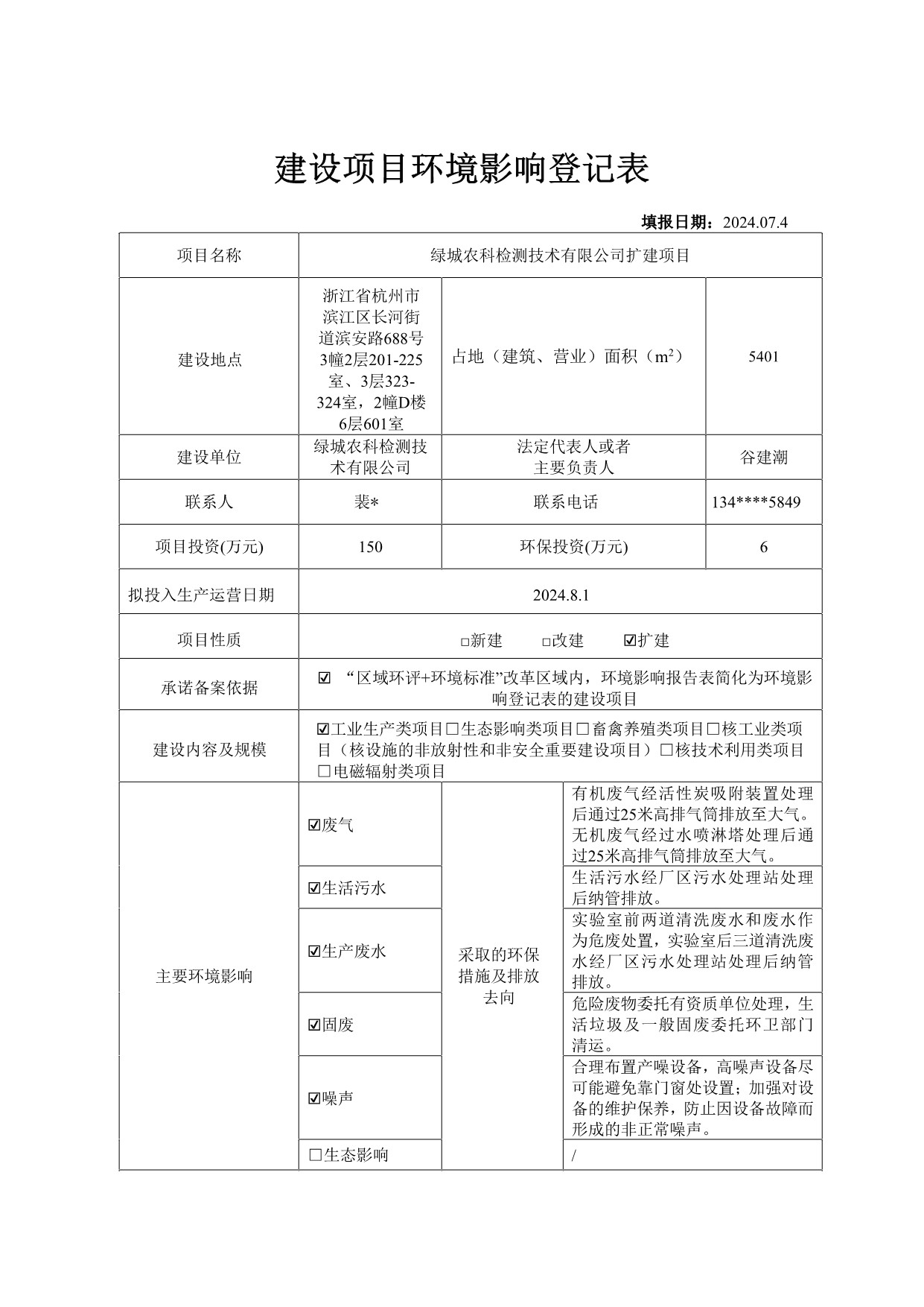 绿城农科检测手艺有限公司扩建项目情形影响挂号表(公示版).pdf
